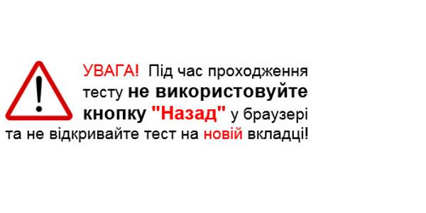Увага! Під час проходження тесту не використовуйте кнопку" Назад " у браузері та не відкривайте тест на новій вкладці!