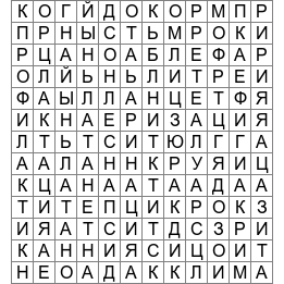 Найдите 16 медицинских терминов, которые расположены в хаотичном порядке. Термины не переплетаются между собой и не располагаются по диагонали.