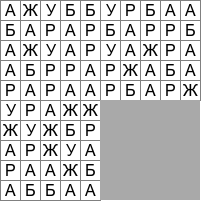 Это филворд в котором нужно находить слова из букв а, а, б, ж, р, у.Есть только 1 слово из 6 букв,а остальные слова из 5,4,3,2 букв!