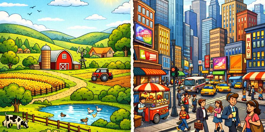 City VS Countryside collocations. This test shows successfully you have learned this topic and how good you are in using collocations on topic City or Countryside.