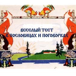 "Веселый тест в пословицах и поговорках" включает в себя девять вопросов, ответив на которые, ты узнаешь, как хорошо ты знаешь пословицы и поговорки. За прохождение теста каждый участник может скачать Сертификат.