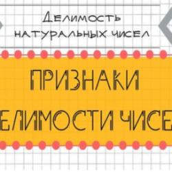 Викторина о целых числах, об операции деления и о признаках делимости на целые числа без остатка.