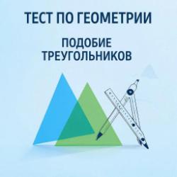 Тест состоит из 10 теоретических вопросов по темам: " Подобие треугольников" и "Три признака подобия треугольников". На каждый вопрос даны варианты ответов.