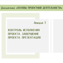 ЛЕКЦИЯ 7. КОНТРОЛЬ ИСПОЛНЕНИЯ ПРОЕКТА. ЗАВЕРШЕНИЕ ПРОЕКТА. ПРЕЗЕНТАЦИЯ